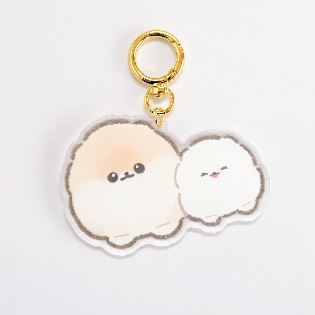 なかよしなポメラニアンのぽぽちとぱぴちがアクリルキーホルダーになりました。